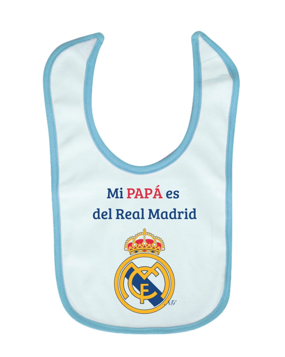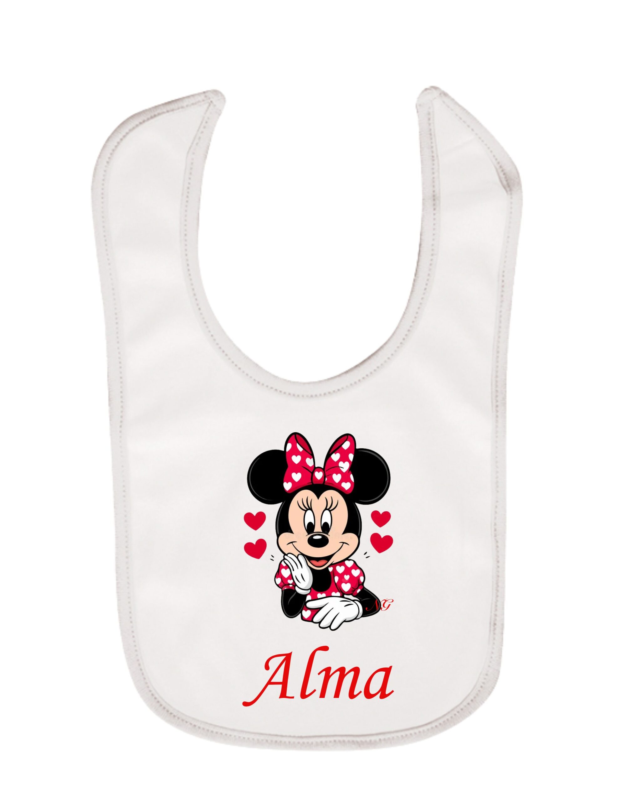 Babero de bebé con velcro. Cuello redondo y color blanco, blanco con ribete azul o blanco con ribete rosa.