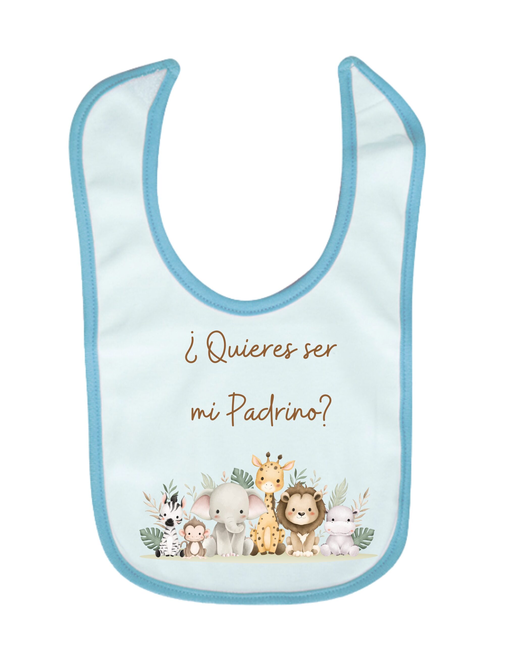 Babero de bebé con velcro. Cuello redondo y color blanco, blanco con ribete azul o blanco con ribete rosa.