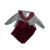 Conjunto de blusa confeccionada en tejido de algodón gordito con textura suave, lleva un estampado de cuadros en colores amarillo, burdeos y azul sobre fondo gris, con cuello rizo elevado y detalle de volante el color burdeos. A juego lleva un pantalón tipo palazo en tejido de pana con cinturilla elástica, también en color burdeos.