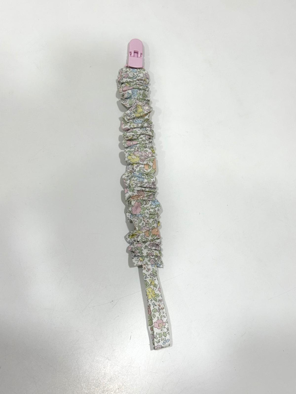 Chupetero de diseño y confección propia con estampado de flores pastel.