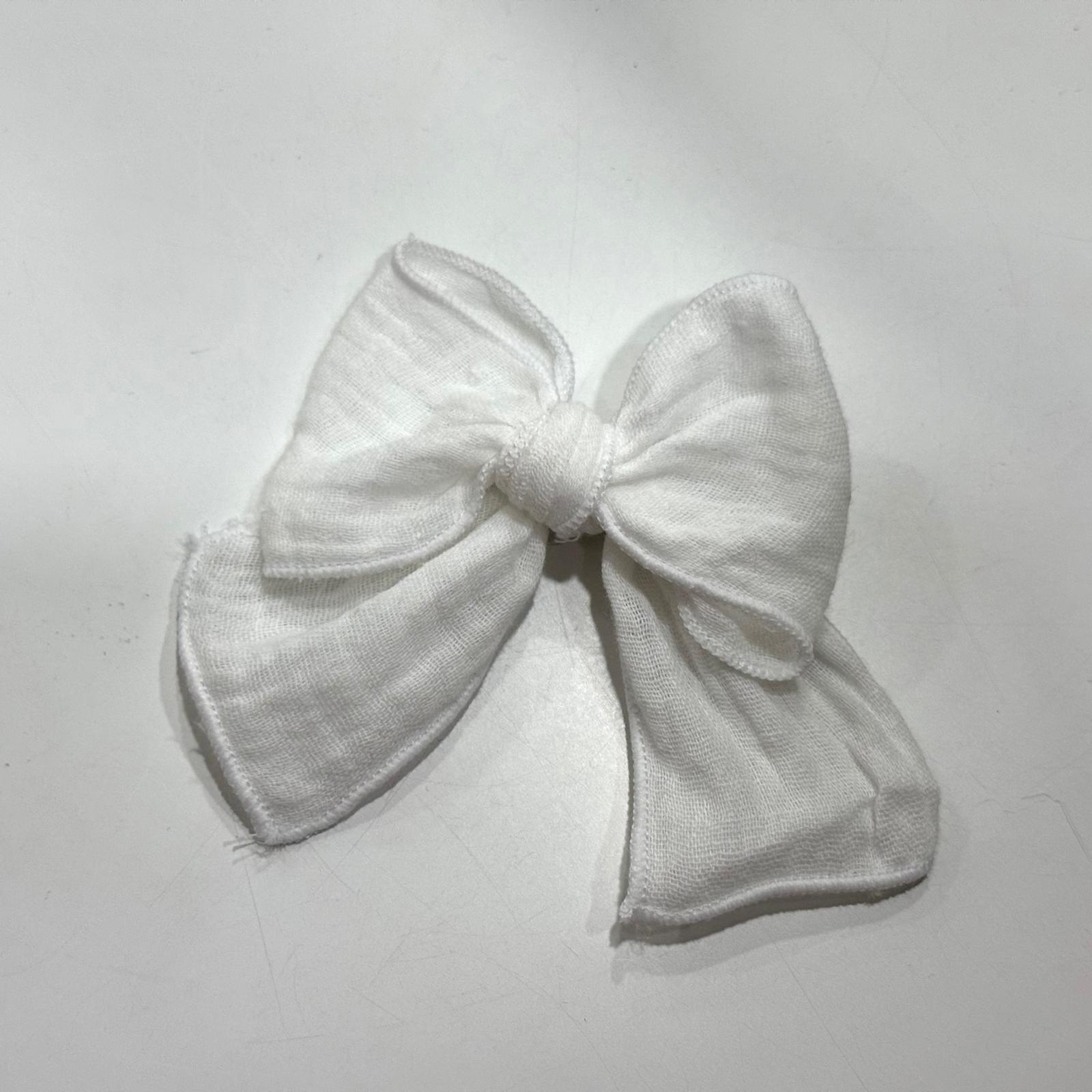 Lazo con pinza en tejido de bambula de algodón color blanco. Tamaño aproximado 8cm.