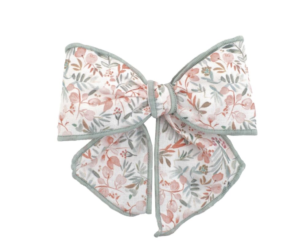 Lazo con pinza en tejido de algodón estampado de cuadros vichy beige de la colección MANDI de Calamaro. Tamaño aproximado 8cm.