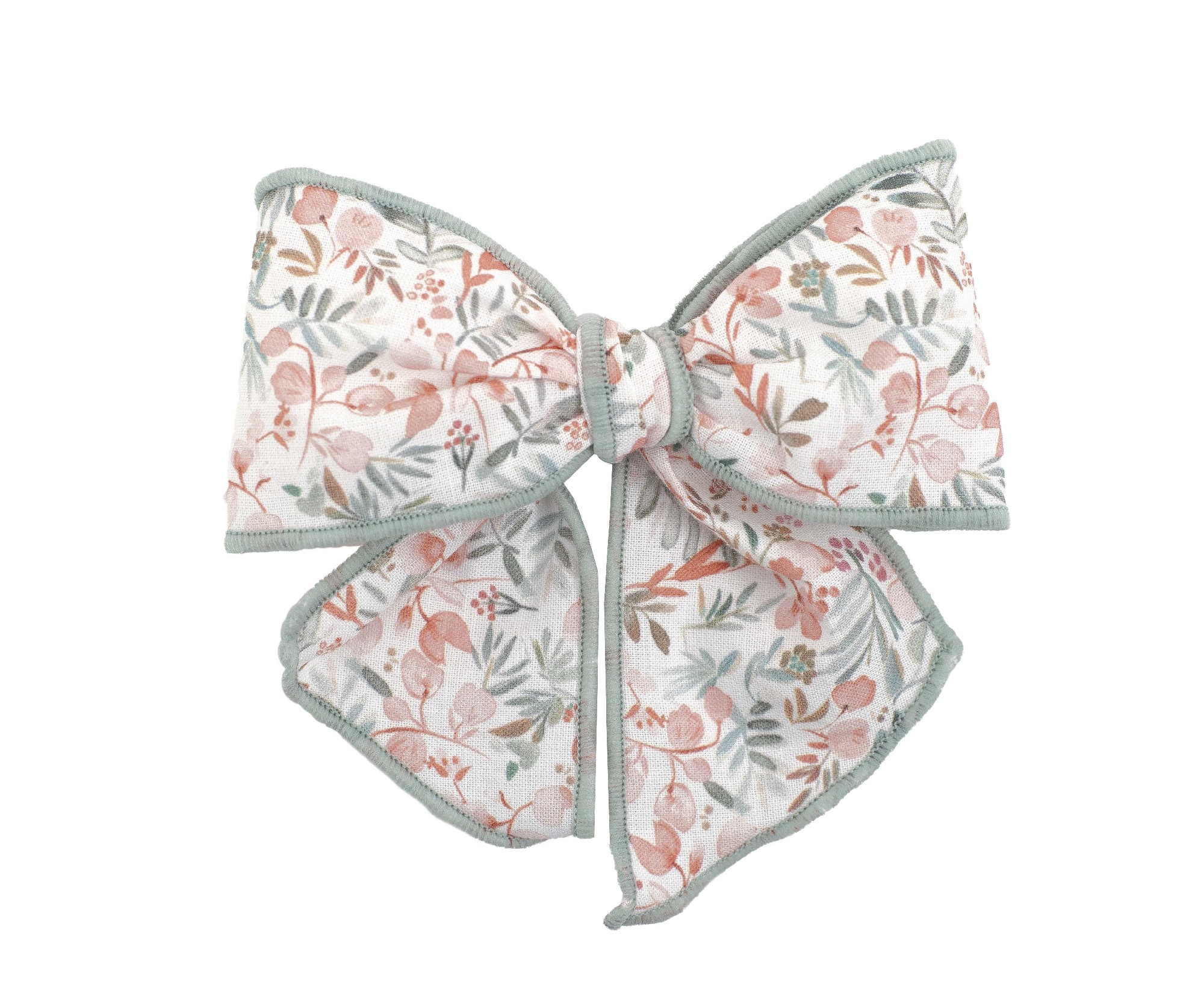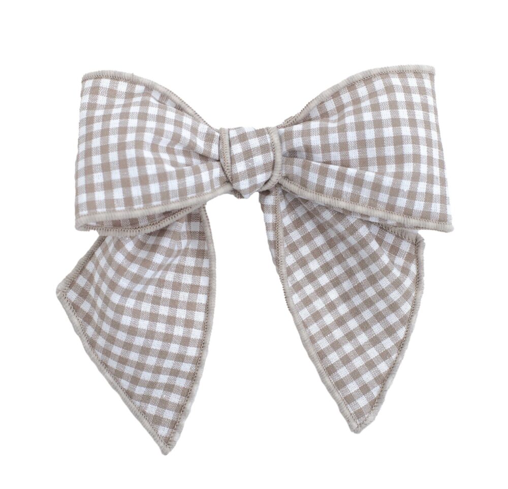 Lazo con pinza en tejido de algodón estampado de cuadros vichy beige de la colección MUMBAI de Calamaro. Tamaño aproximado 8cm.