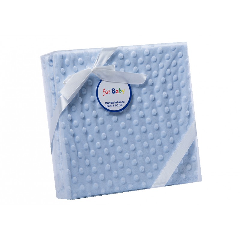 Manta de coralina con topitos básica. Disponible en celeste, rosa bebé, rosa maquillaje,gris, blanco, beige, verde menta y amarillo. Se puede personalizar con el nombre.