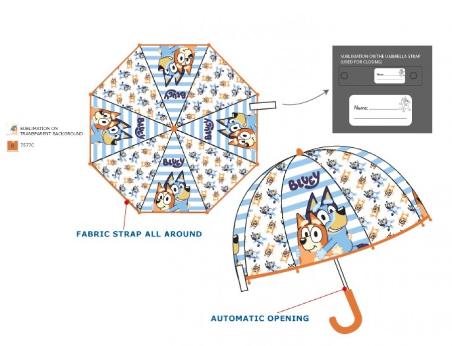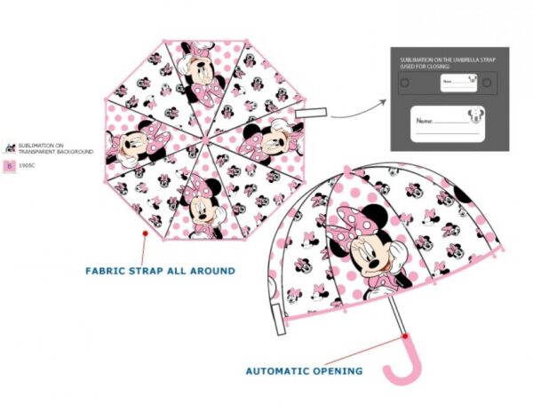 Paragüas con estructura de fibra de vidrio de alta resistencia, apertura automática, hecho en plástico transparente con cierre de corchete. Tamaño 45cm de alto por 71 cm de ancho. Recomendado para altura de 70cm hasta 90cm.