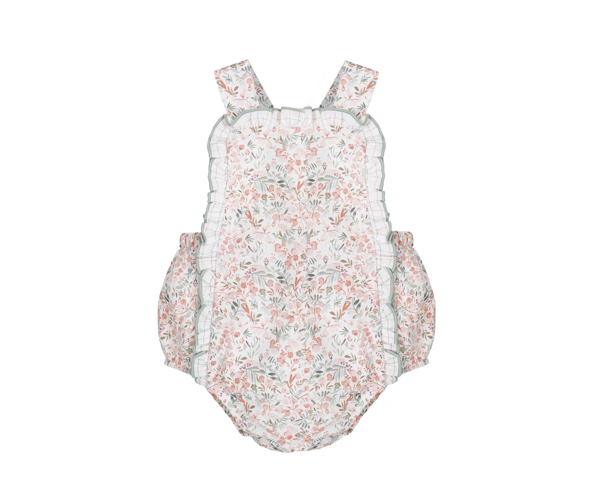 Ranita de flores con tirantes y detalles de volantes laterales con estampado de cuadros.